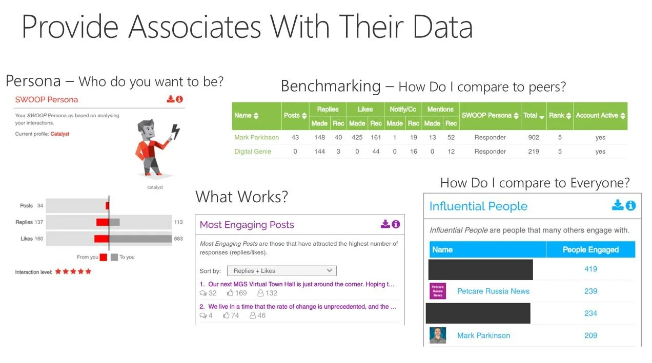 Mars also uses SWOOP data to make scorecards to drive collaboration in Yammer groups.